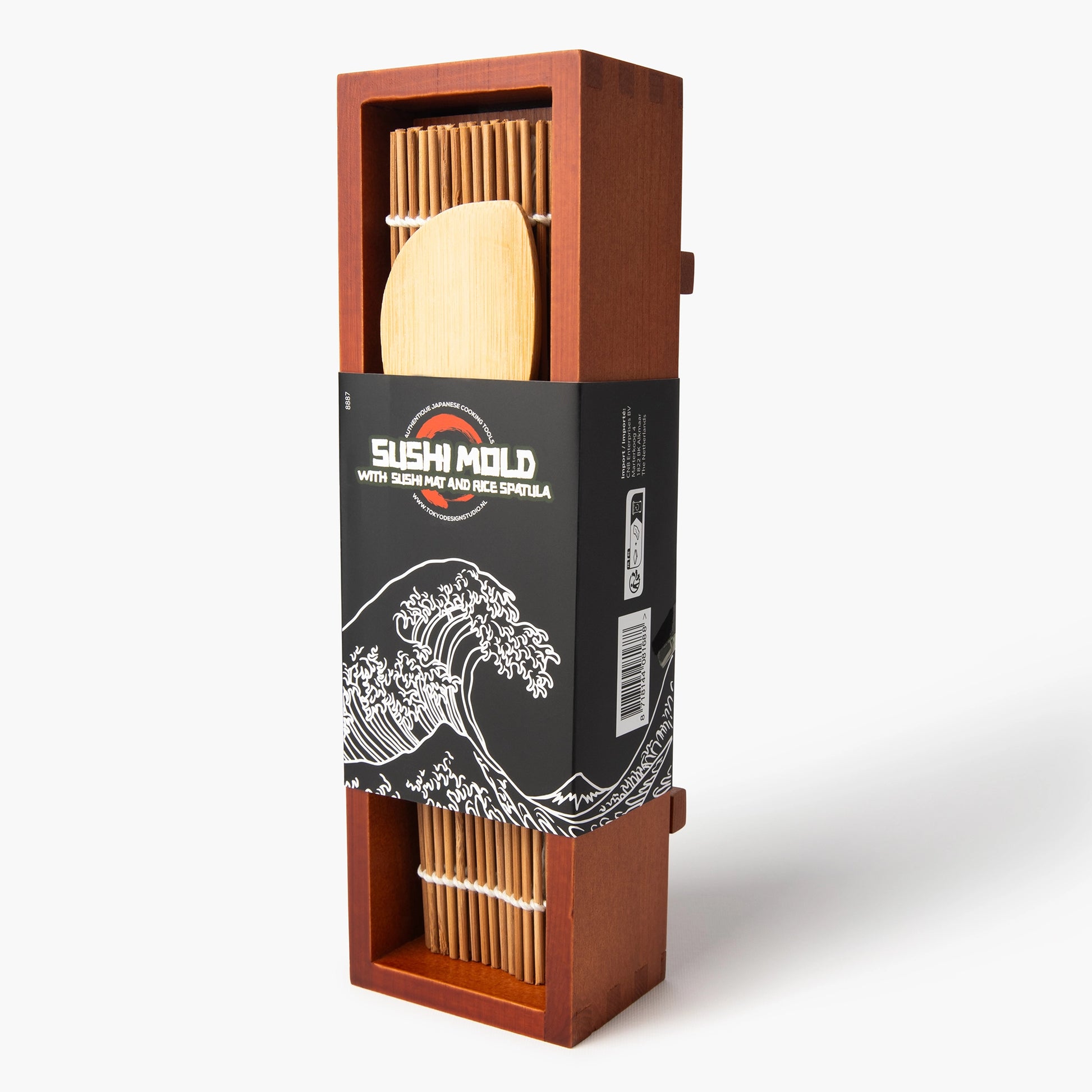 A boxed set containing an assortment of utensils for making your own sushi at home. It includes a mold for making oshizushi, a maki roller (makisu) for shaping your maki, and a rice spoon for scooping and shaping the rice. Simply add half sheets of nori, sushi rice, and some tsukemono to this kit, and you'll have everything you need to make different types of sushi at home. Whether it's for yourself or as a gift, this set is the perfect present for anyone who loves Japanese cuisine. This Tokyo Design Studio sushi kit includes an oshizushi mold, a traditional makisu for rolling maki, and a rice spoon for shaping. It allows you to make uniform sushi, well-structured rolls, and neat presentations at home. A practical set for perfecting your preparations and exploring various Japanese cooking techniques.