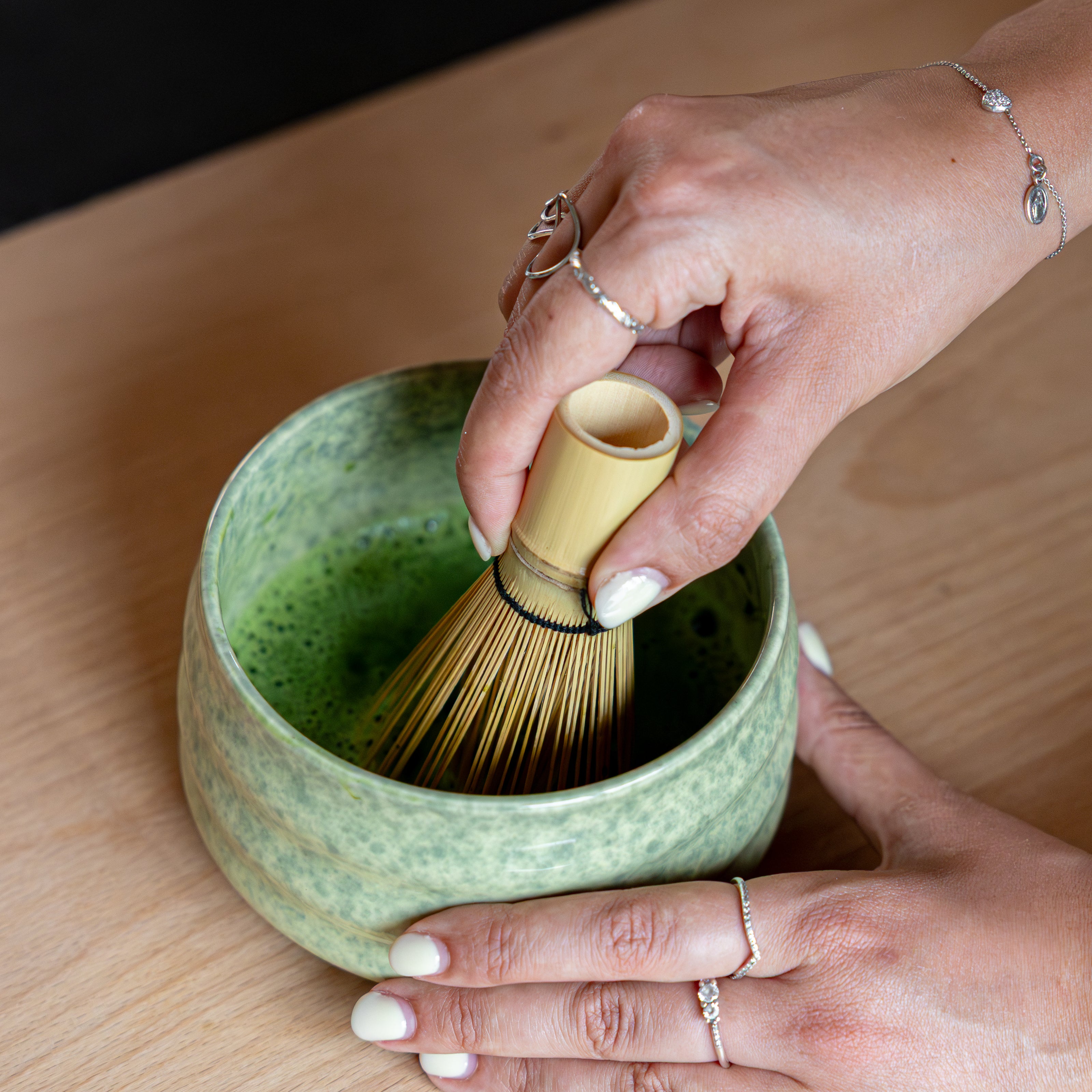 Remove any matcha residue by shaking lightly or gently running your finger between the strands.